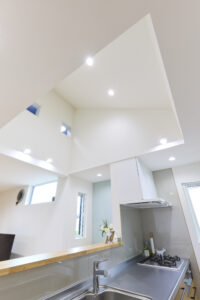 2階キッチンの天窓はなくし、大きな空間を活かして開放的に。
